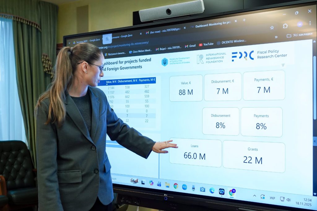 Інша складова проєкту – моніторинг проєктів, що фінансувалися міжнародними фінансовими організаціями. У 2025 році Центр і Міністерство розвитку громад та територій підписали меморандум про співпрацю. Команда розробила публічний інтерактивний дашборд для представлення інформації про донорів, проєкти та їх регіональний розподіл, а також внутрішній інструмент для відстеження реалізації проєктів у самому міністерстві.