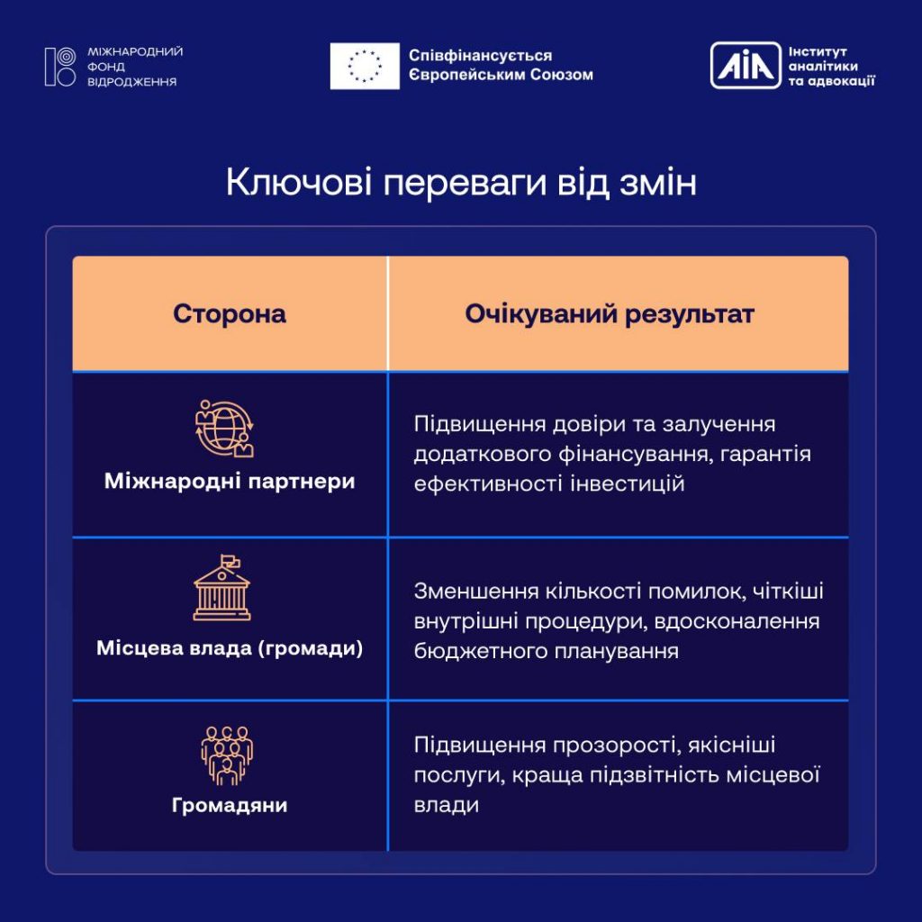 ГО «Інститут аналітики та адвокації» допоміг Рахунковій палаті України підсилити підхід до фінансового контролю та аудиту місцевих бюджетів за європейськими стандартами.