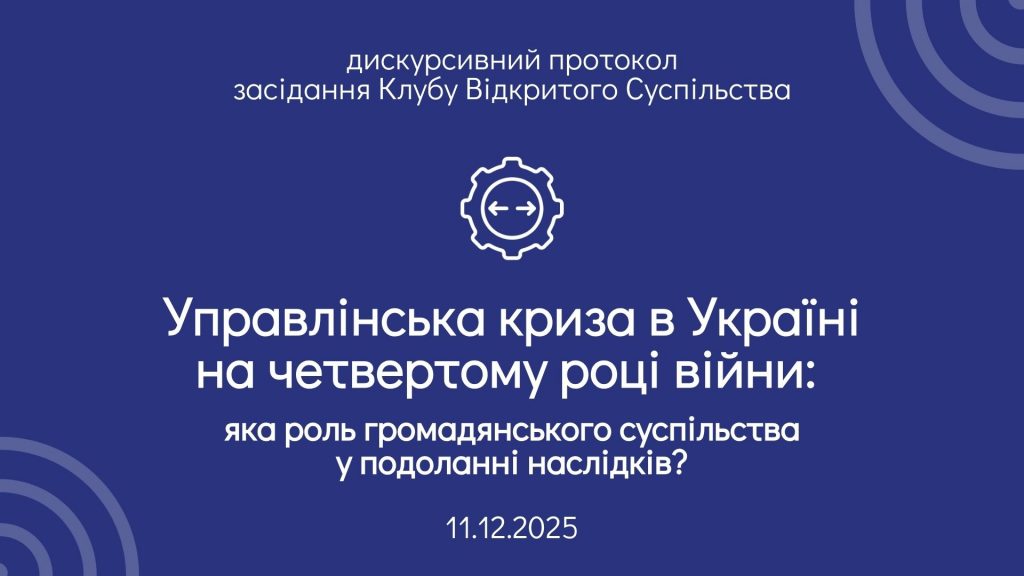 11 грудня в Міжнародному фонді «Відродження» відбувалася зустріч Клубу відкритого суспільства на тему «Управлінська криза в Україні на четвертому році війни: яка роль громадянського суспільства у подоланні наслідків?»
