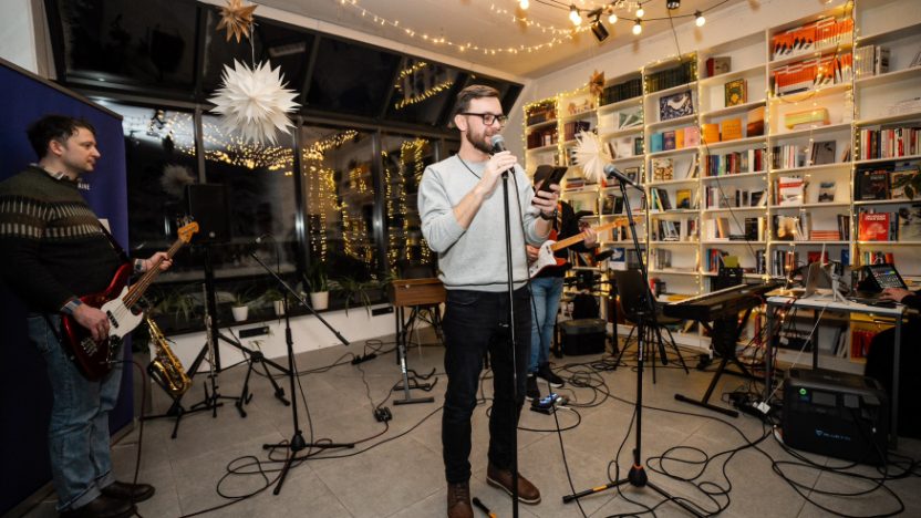 Поетичні читання пройшли під музичний супровід Kyiv Philosophy Band, у якому того вечора грали філософи та публіцисти Володимир Єрмоленко, Микола Сіома, Вадим Менжулін, Вадим Пенюк.