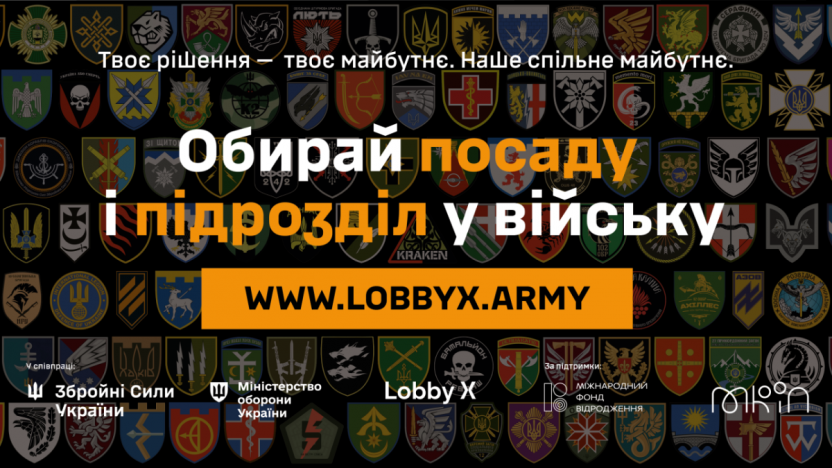 “Обирай посаду і підрозділ у війську” – це гасло інформаційної кампанії, яка реалізується платформою Lobby X у співпраці з Міноборони, Міністерством культури та інформаційної політики України, Збройними силами України та за підтримки Міжнародного фонду «Відродження».
