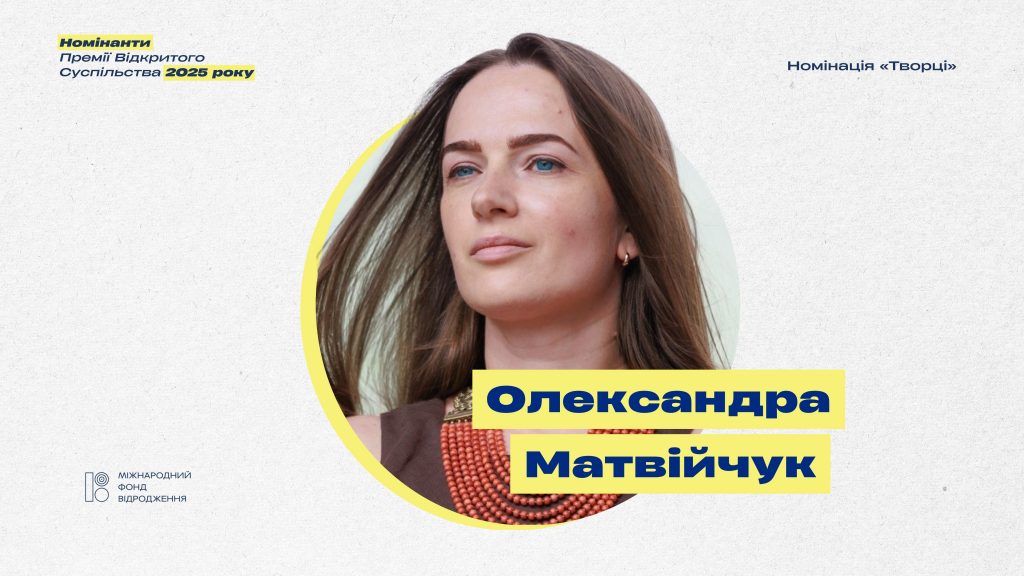 Олександра Матвійчук із 2007 року очолює Центр громадянських свобод, який системно працює з темою захисту прав людини. У 2013 році стала організаторкою ініціативи «Євромайдан SOS», що об’єднав сотні адвокатів та тисячі волонтерів. Після 2014-го документувала злочини в Криму та на Донбасі та займалася звільненням українських політв’язнів у росії, з 2022-го – веде масштабну роботу з фіксації воєнних злочинів. Є співзасновницею ініціативи «Трибунал для путіна», лауреаткою численних нагород, зокрема у 2022 році від імені Центру громадянських свобод отримала Нобелівську премію миру.