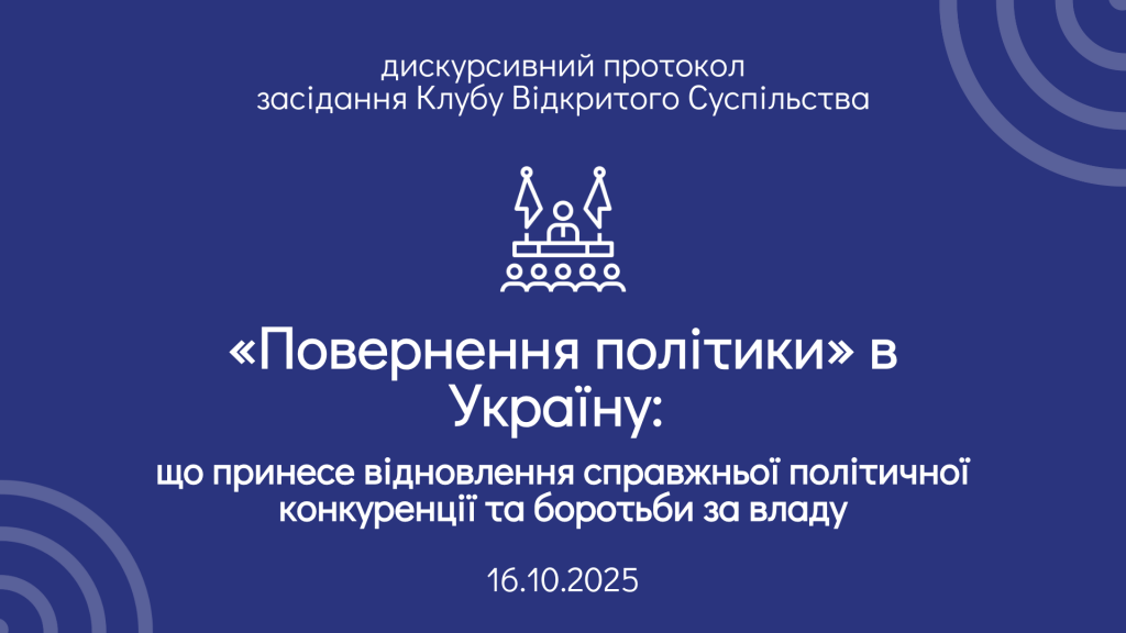 16 жовтня в Міжнародному фонді «Відродження» відбувалася зустріч Клубу відкритого суспільства на тему «Повернення політики» в Україну: що принесе відновлення справжньої політичної конкуренції та боротьби за владу»
