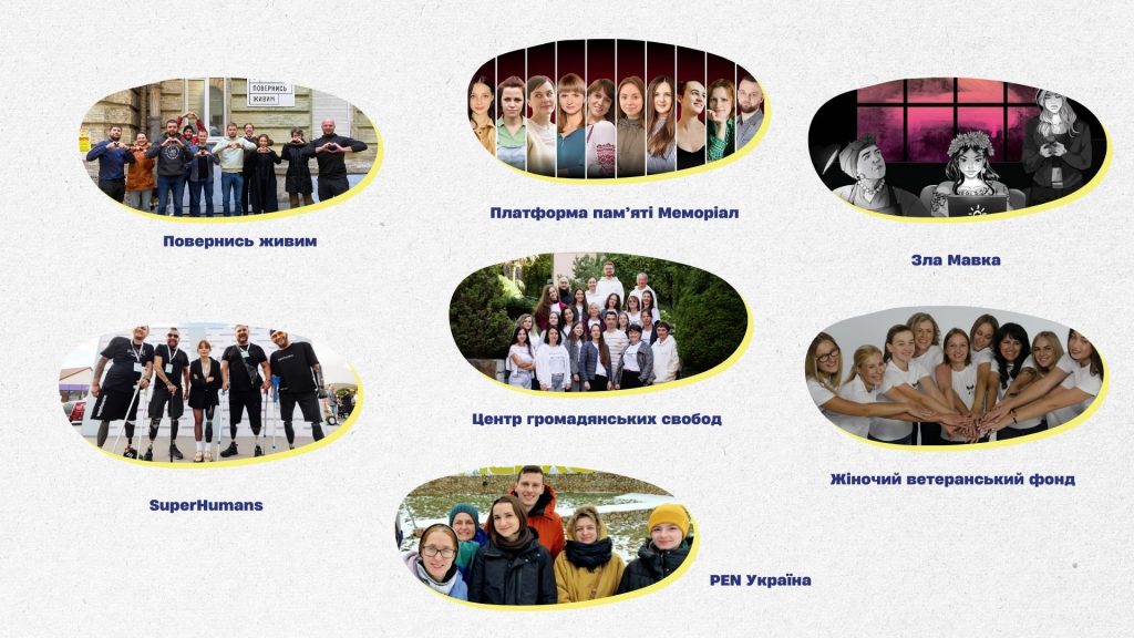 Фіналісти в номінації «Голоси Відкритого Суспільства» серед організацій: Платформа пам’яті «Меморіал», Повернись живим, Центр громадянських свобод, SuperHumans, Жіночий ветеранський рух, PEN Ukraine, Зла мавка.