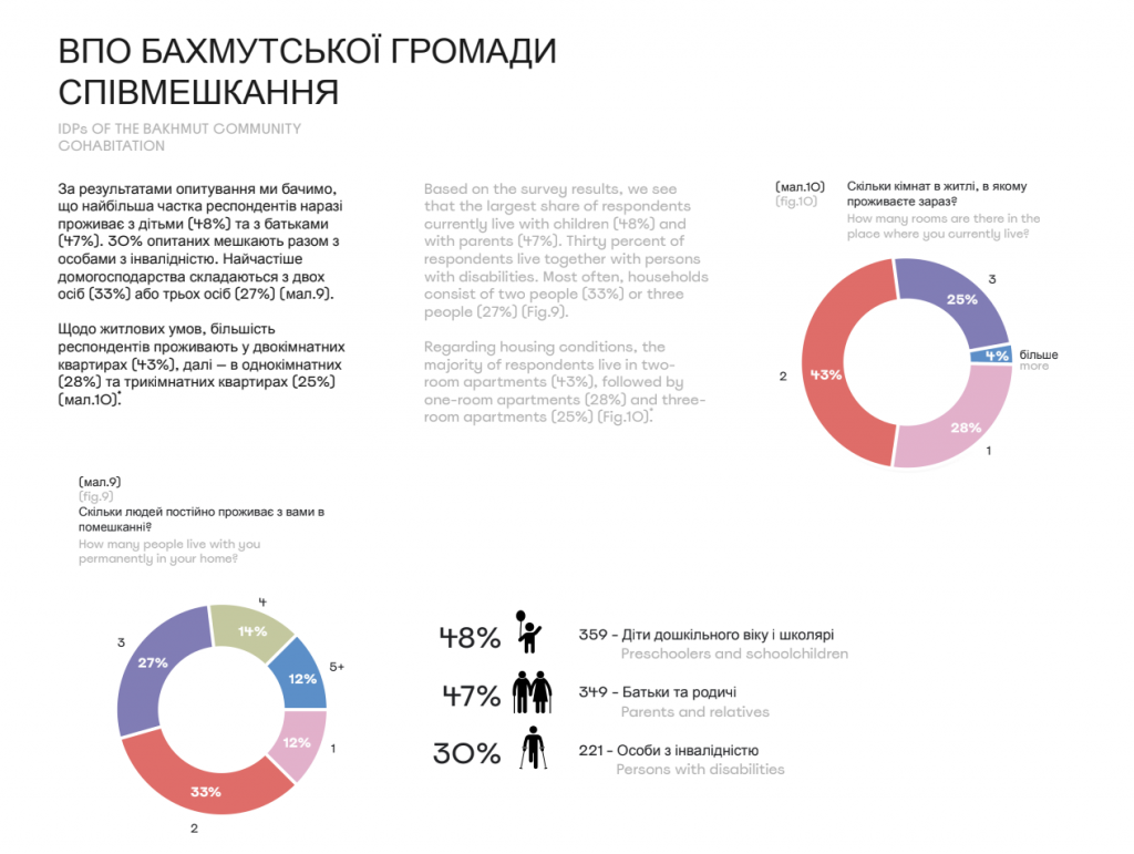 Дослідження поєднує соціологічний, аналітичний і концептуальний підходи. Воно базується на внутрішньому опитуванні ВПО Бахмутської громади, глибинних інтерв’ю, онлайн-воркшопі зі спільного формування бачення майбутнього житла, а також аналізі житлової політики та українських практик.