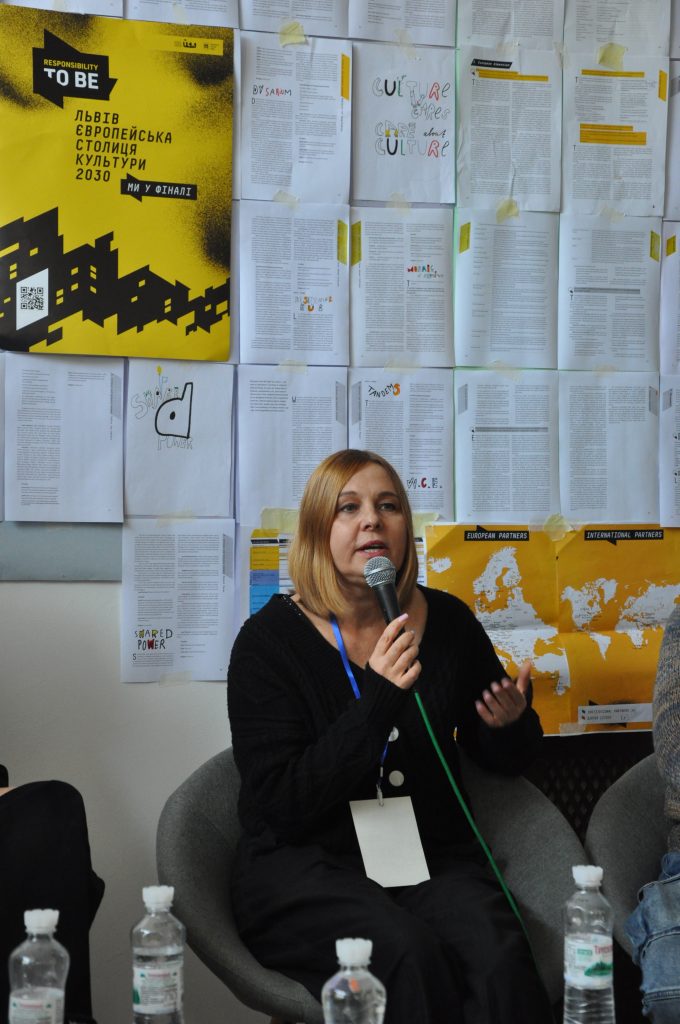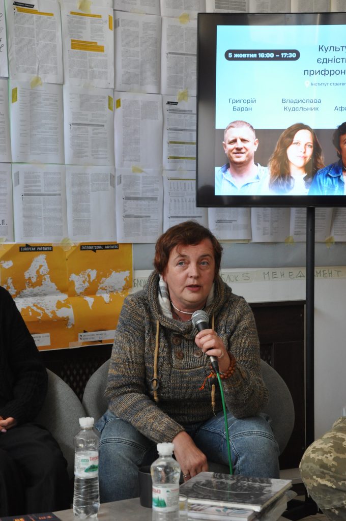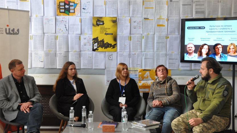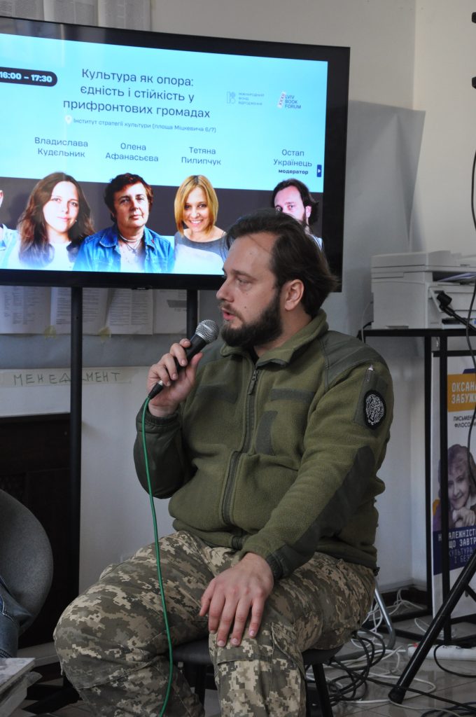 В рамках ХХХІІ Lviv Book Forum («Форум видавців») за підтримки Міжнародного фонду «Відродження» відбулася дискусія «Культура як опора: єдність і стійкість у прифронтових громадах». Її учасниками стали Тетяна Пилипчук (Харківський літературний музей), Владислава Кудєльник (Цукр, м. Суми), Олена Афанасьєва (ЦКР “Тотем” м. Херсон), Григорій Баран (директор програми «Соцальний капітал», Міжнародний фонд «Відродження», м. Київ). До розмови також долучалосяАлевтина Швецова, координаторка проєкту «Місто Марії» (м. Маріуполь). Модерував розмову Остап Українець.